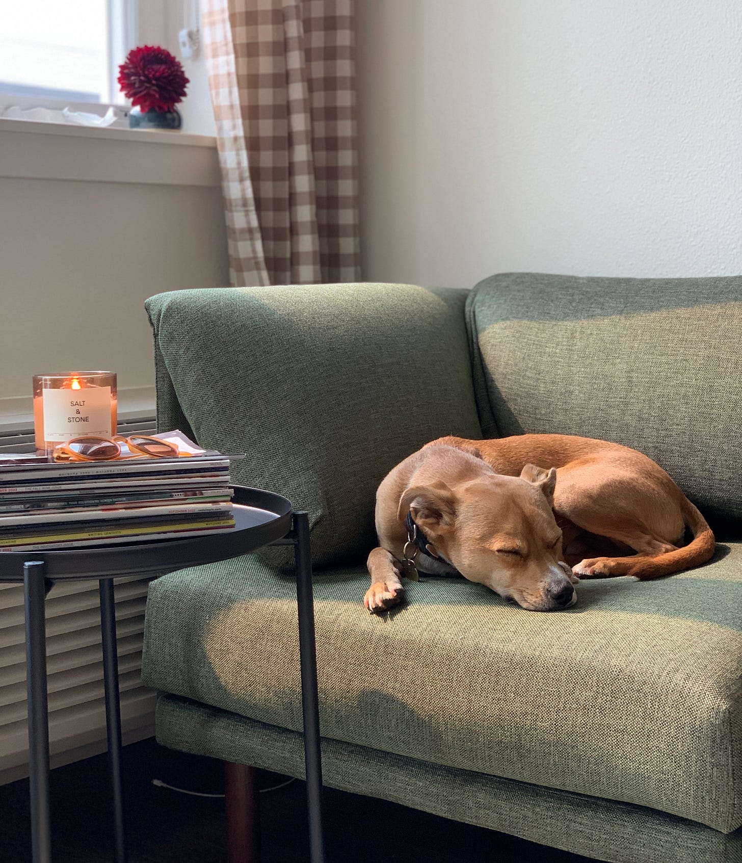 It’s surprising how little I’ve written about my dog Toast , despite him being one of the most important relationships in my life. Until recently, I’ve split him fifty-fifty with my ex, but anytime he’s at my apartment, he spends his days perched on the chair directly behind my desk watching me work, his paws crossed under his chin until he falls asleep or jumps down to ask for a scratch behind his soft ears. At just twenty pounds, his personality and mischievousness far outweigh his size. He’s my partner-in-crime and up for anything, be it morning walks, long afternoons reading, camping trips, or paddle board adventures. Through I grew up with dogs, having my own has been so much harder and more rewarding than I ever imagined it would be. Below I share tips I’ve learned in the almost three years since adopting Toast, a favorite poem, and the ways he helped me heal from my breakup: