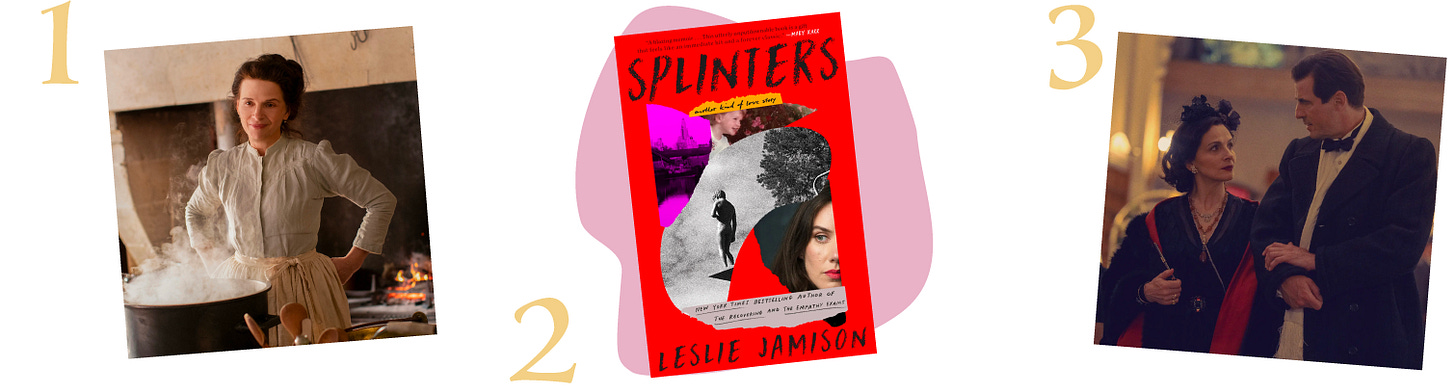 📚 Splinters: Another Kind of Love Story by Leslie Jamison: Of agreeing to marry her husband, C, Jamison writes, “I listened to the part of myself that was falling in love, and ignored everything else. That false certainty is what I’ll have to keep answering for—for years and years, maybe always. To my daughter, most of all.” In her intimate memoir, which came out today, though this excerpt was circulated widely, Jamison examines the promises her marriage held and the ways in which the birth of their daughter revealed their brokenness. It definitely hit a little to close to home for me, but in a good way.