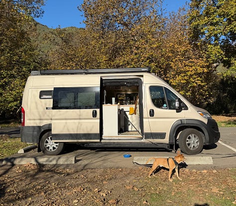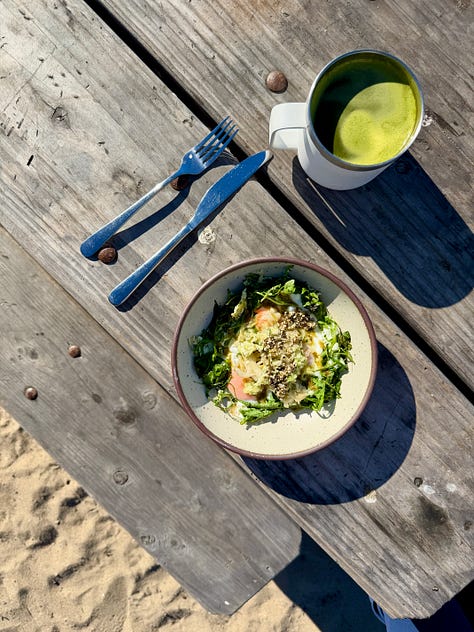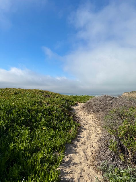 When I left Los Angeles earlier this week, I did the same drive in reverse, finding a campground—entirely by coincidence—at the same beach Maggie sees in that moment. Most of the campsites are on eastern side of the highway, shaded by oak trees, but I was still able head over to the water for sunset. Sitting there watching the sky change from orange to purple, with the entire beach to myself, I almost couldn’t believe my luck and the ways my own life has blossomed since writing that chapter. It felt like a distillation of the gratitude I experienced all week long, visiting friends in Southern California. Read on for: